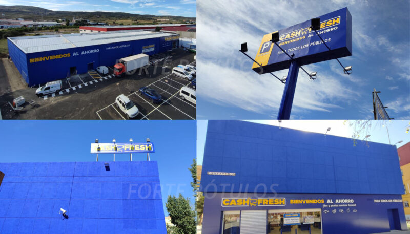 Rotulación exterior e interior para diversos establecimientos CASH FRESH