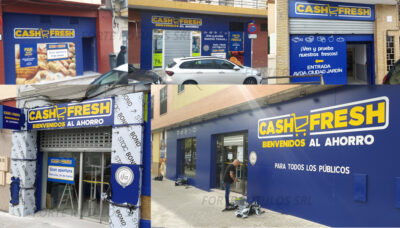 Varios establecimientos Cash Fresh rotulados de forma integral. Recuerde que es la cadena de distribución regional más barata de España. No deje de visitarles.