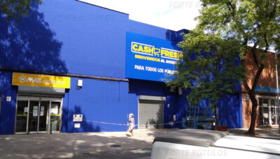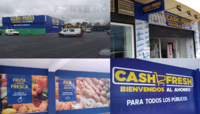 Nueva rotulación exterior e interior para Cash Fresh, la cadena de distribución regional más barata de España.