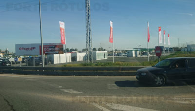 Valla y banderas para Record Go. Puede encontrarles junto al Aeropuerto de Sevilla.
